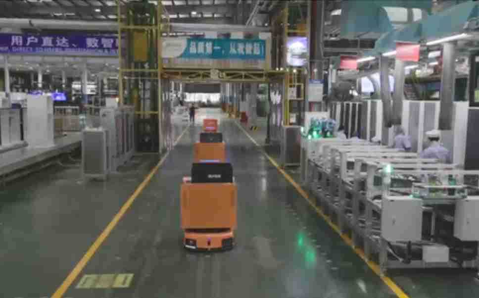 为车载冰箱物流配送打造的智能解决方案,,包含产中物流通过潜伏举升AMR搬运至线边,,产后成品物流智能仓储,,流程包含产中物流智能齐套入库,,,线边安灯叫料AMR智能配送至线边,,,成品入库、、、出库,,,,通过无人堆高车机器人,,智能仓储管理替代人工作业管理,,实现更高存储、、、更高效率、、更具柔性化的解决方案。。。。
